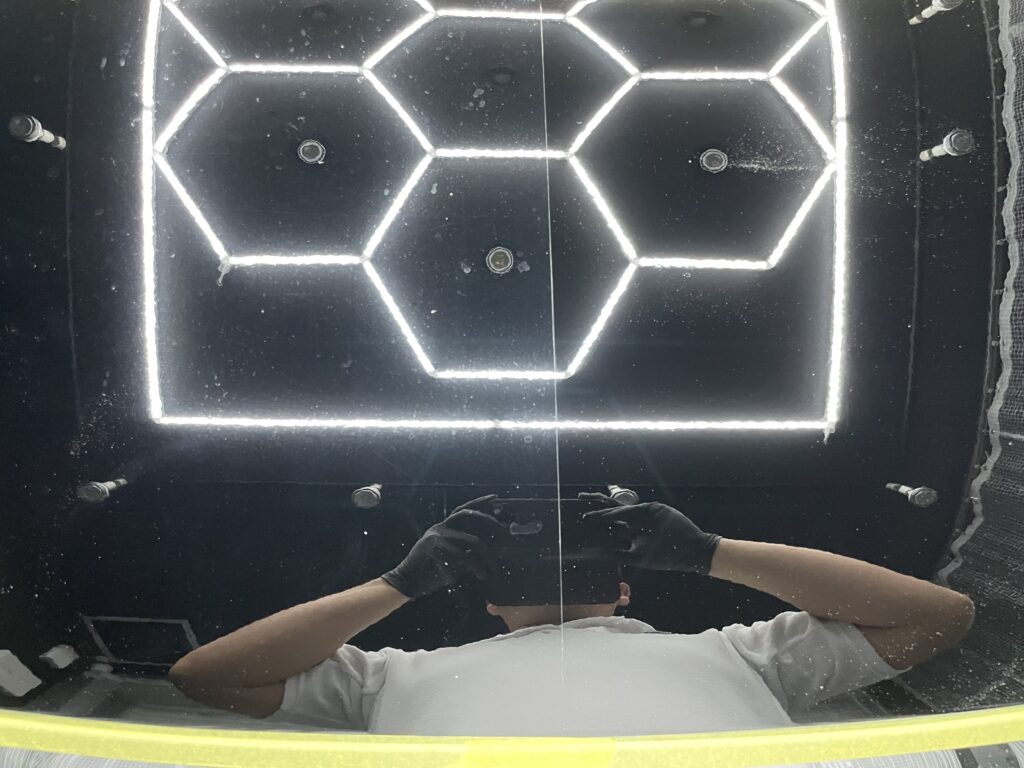 写真で見ると少し伝わりにくいかもですが天井のハニカムライトの見え方が変わってるでしょ?